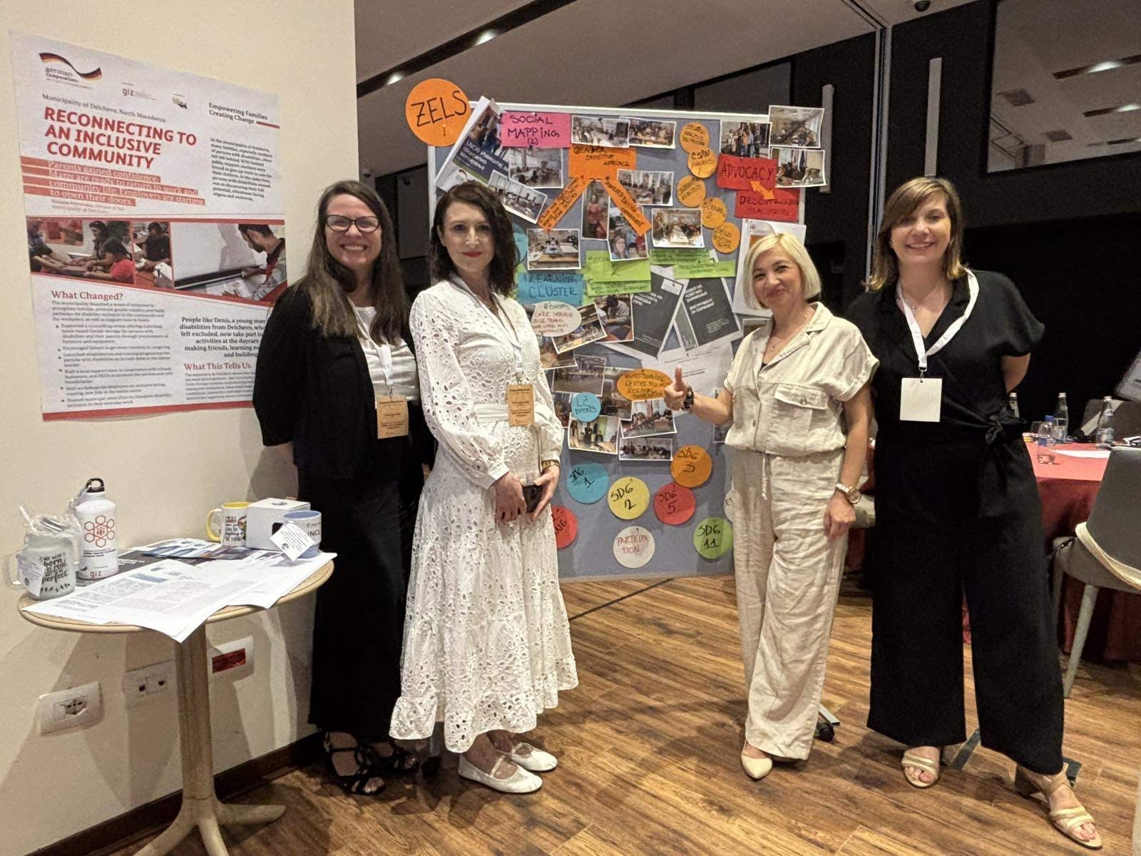 ЗЕЛС кој е имплементирачки партнер на проектот “Регионална соработка за подобра социјална инклузија на локално ниво“ користејќи креативни форми на претставување на резултатите ги презентираше пред сите земји учеснички на табла во т.н. „маркет на производи“. ЗЕЛС се престави со двата модели за децентрализација на Центрите за социјална работа кои беа изработени со експертска поддршка како дел од проектната компонента „Застапување на Асоцијациите“. Кај посетителите на „маркетот“ односно таблата за презентирање претставничката од ЗЕЛС зборуваше за чекорите кои претходеа пред да се добијат овие два модели за децентрализација во кој се содржани препораки за продолжување со целосна фискална децентрализација, со што на крај треба да резултира со усвоен позиционен документ на ЗЕЛС за целосна децентрализација и кој е усогласен со позициониот документ на НАЛАС за социјална инклузија и миграција. Колешките и колегите од другите асоцијации побараа ЗЕЛС да ги сподели овие модели за децентрализација и со нив, но и да разменуваат искуства и понатаму во оваа област кога би се работеле на продолжување на децентрализацијата во нивните земји со цел усогласување на одредени области кои се од корист на крајните корисници во општините од сите земји од Западен Балкан.